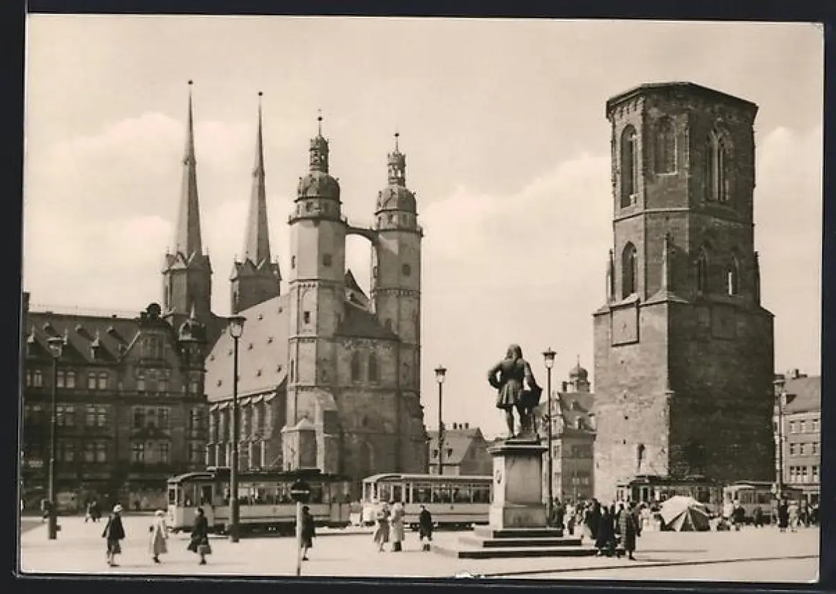 AK Halle /Saale, Marktplatz mit Strassenbahn