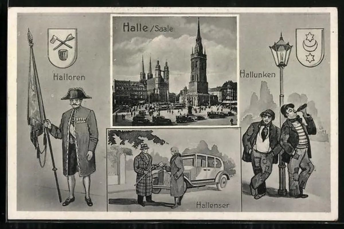 AK Halle /Saale, Strassenpartie mit Kirche, Hallenser, Halloren