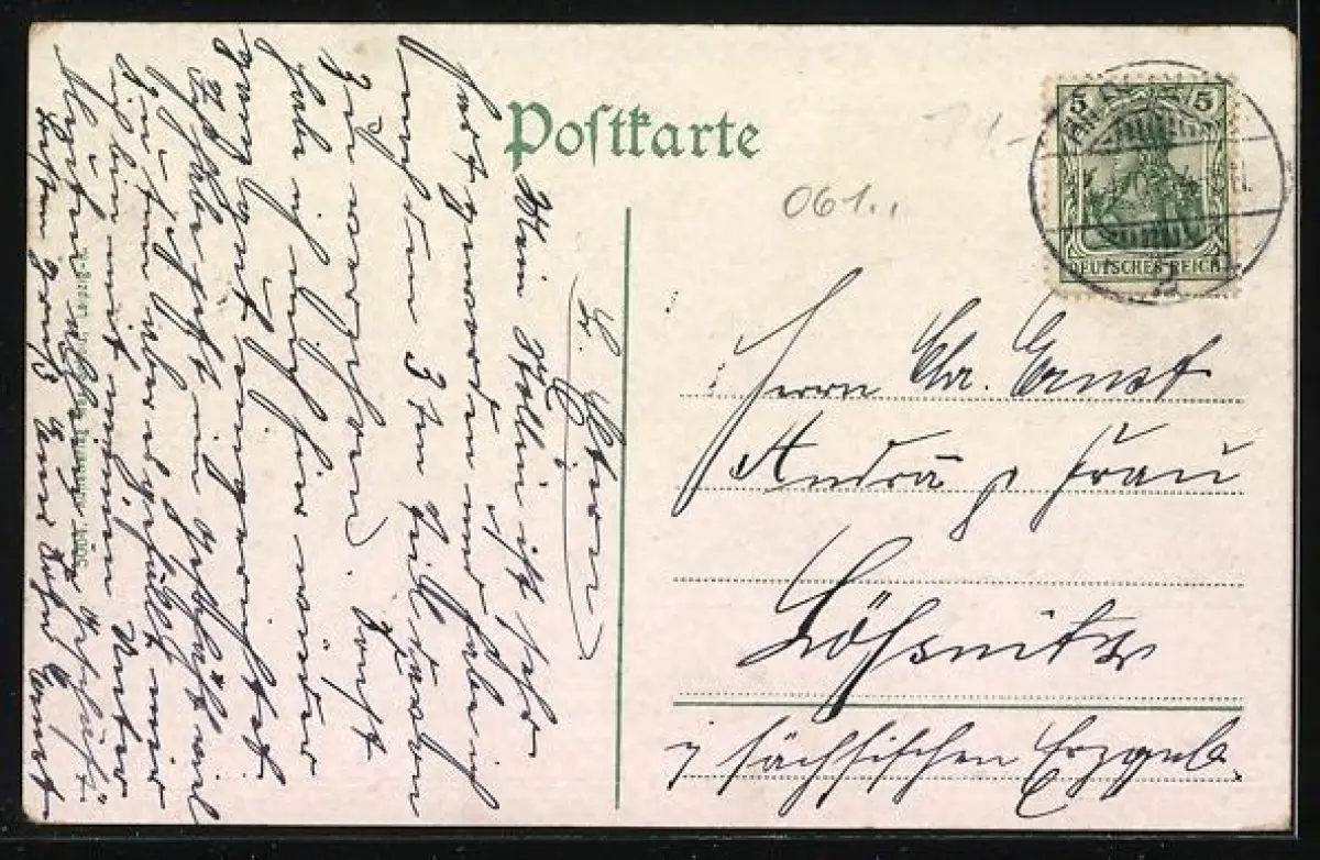 alte Ansichtskarte, gelaufen, Abriebspur oben rechts, guter Zustand