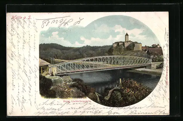 AK Halle a. S., Burg Giebichenstein mit Saalebrücke