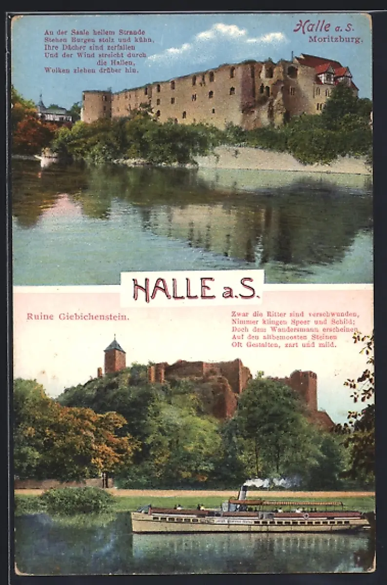 AK Halle a. S., Moritzburg, Ruine Giebichenstein, Saaleansicht