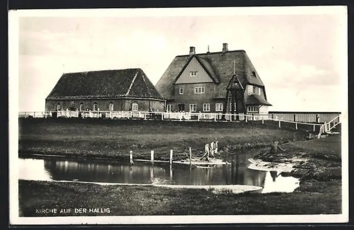 AK Hallig Hooge über Husum, Kirche auf der Hallig