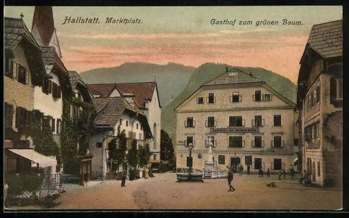 AK Hallstatt, Gasthof zum grünen Baum am Marktplatz