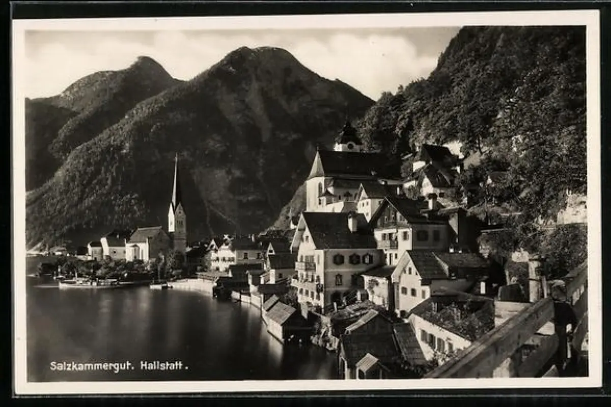 AK Hallstatt, Häuser am Ufer mit Blick zur Kirche