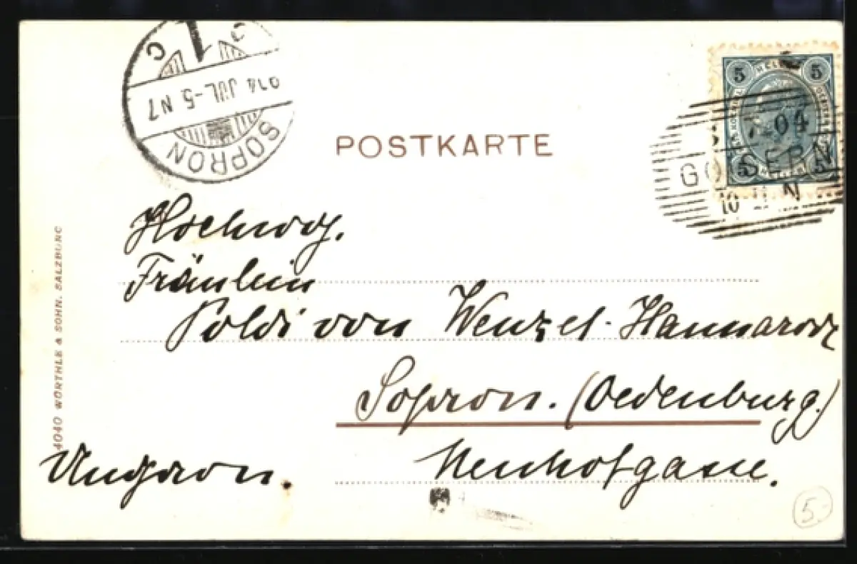 alte Ansichtskarte, gelaufen 1904, Stempelspur, guter Zustand