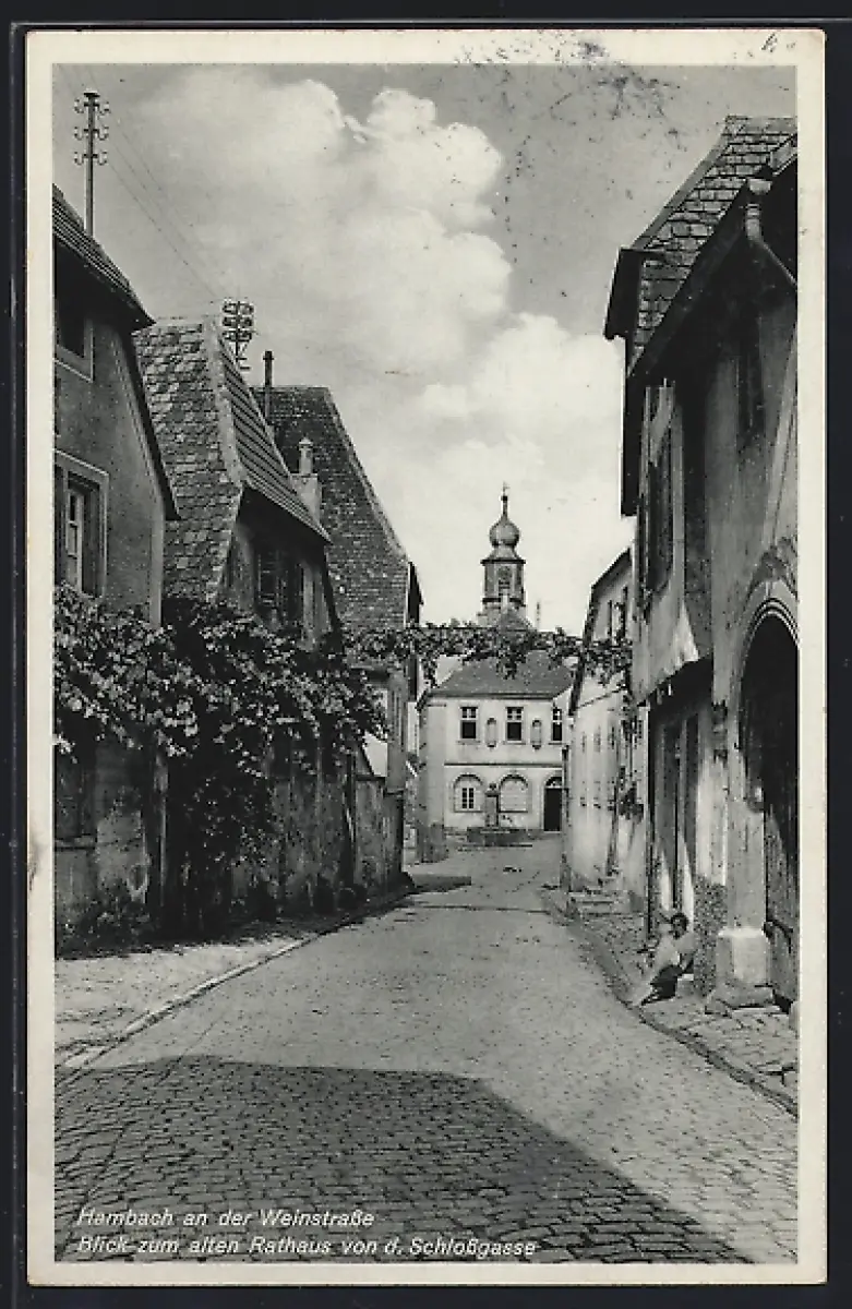 AK Hambach an der Weinstrasse, Blick zum alten Rathaus von der Schlossgasse