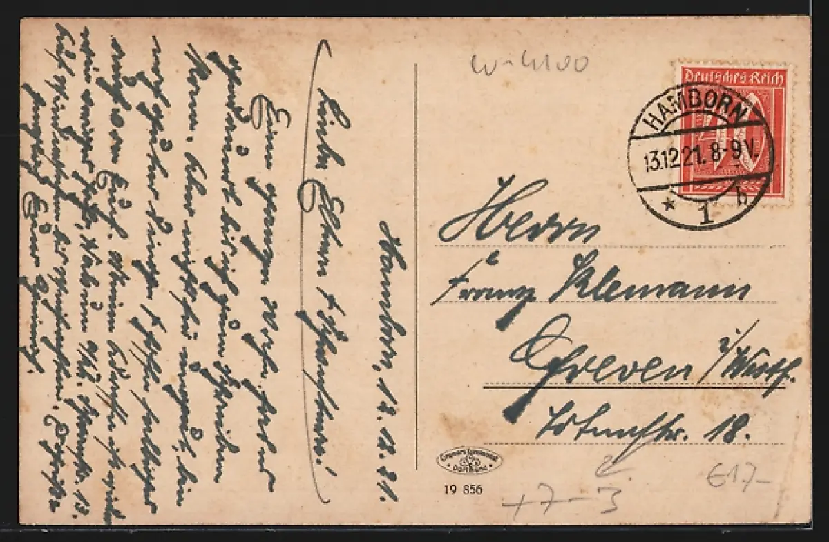 alte Ansichtskarte, gelaufen 1921, Eckknick li. unten, Bugspur li. unten, guter Zustand