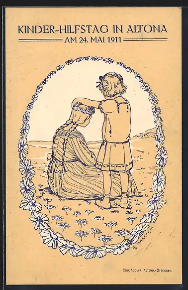 AK Hamburg-Altona, Kinder-Hilfstag 1911, Mädchen mit einem Blumenkranz