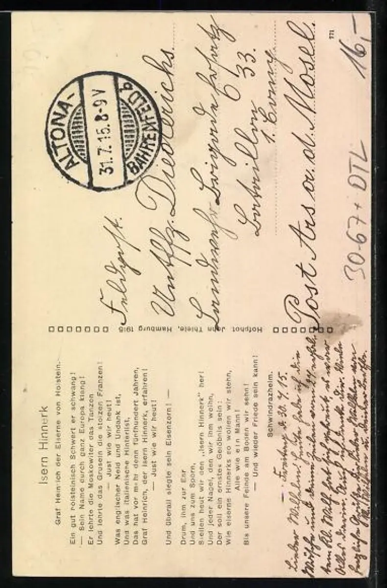 alte Ansichtskarte, gelaufen 1915 als Feldpost, guter Zustand