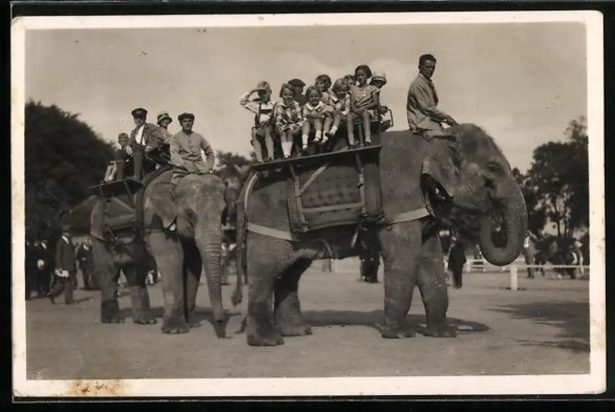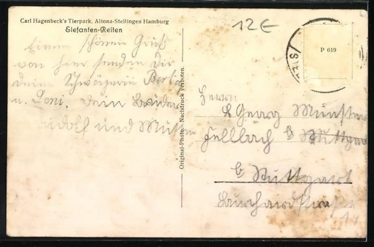 AK Hamburg-Altona-Stellingen, Carl Hagenbecks Tierpark, Elefanten-Reiten