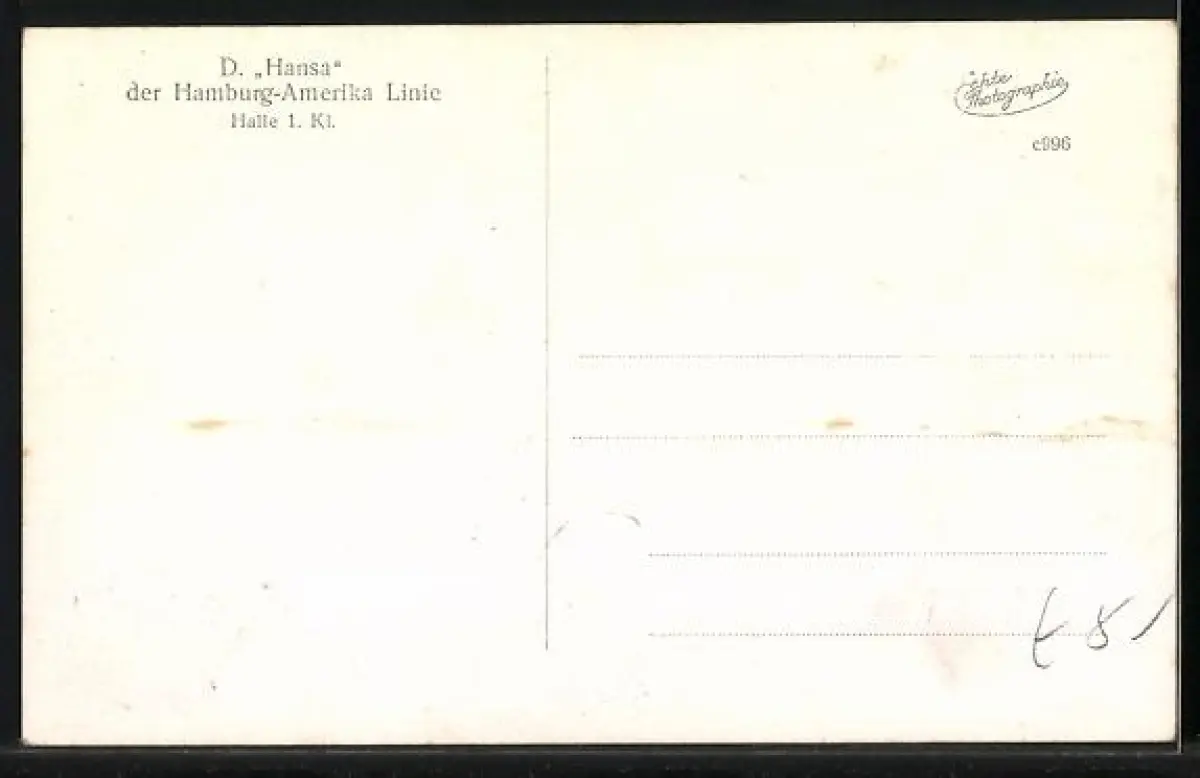 AK Hamburg-Amerika Linie Passagierschiff Hansa, Halle 1. Kl.