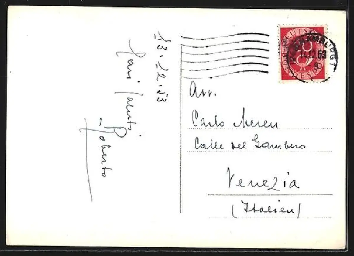 alte Ansichtskarte, gelaufen 1953, Eckknicke re., guter Zustand