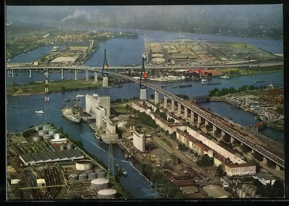 AK Hamburg, Blick auf die Köhlbrandbrücke