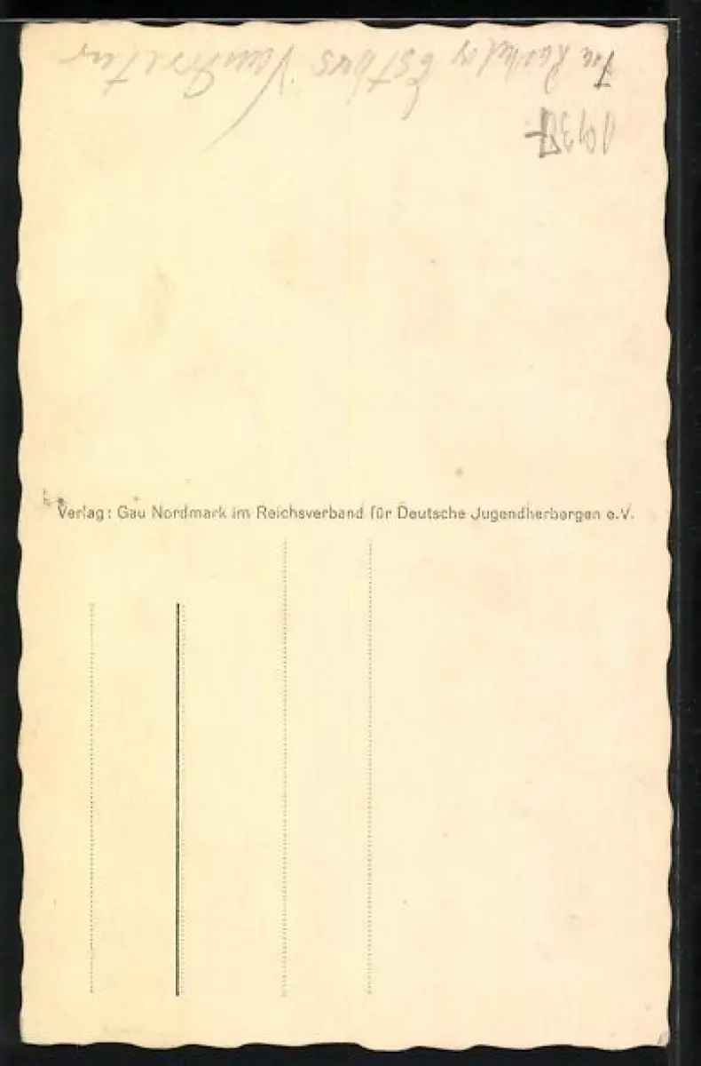 Personenbezogene Daten auf der Rückseite der Karte wurden durch blauen Textmarker unkenntlich gemacht. Die blauen Stellen sind auf die Vorderseite durchgeweicht und wirken sich negativ auf das Postkartenfoto aus