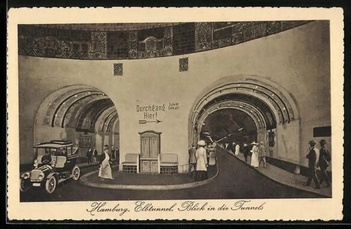 AK Hamburg, Elbtunnel, Blick in die Tunnels
