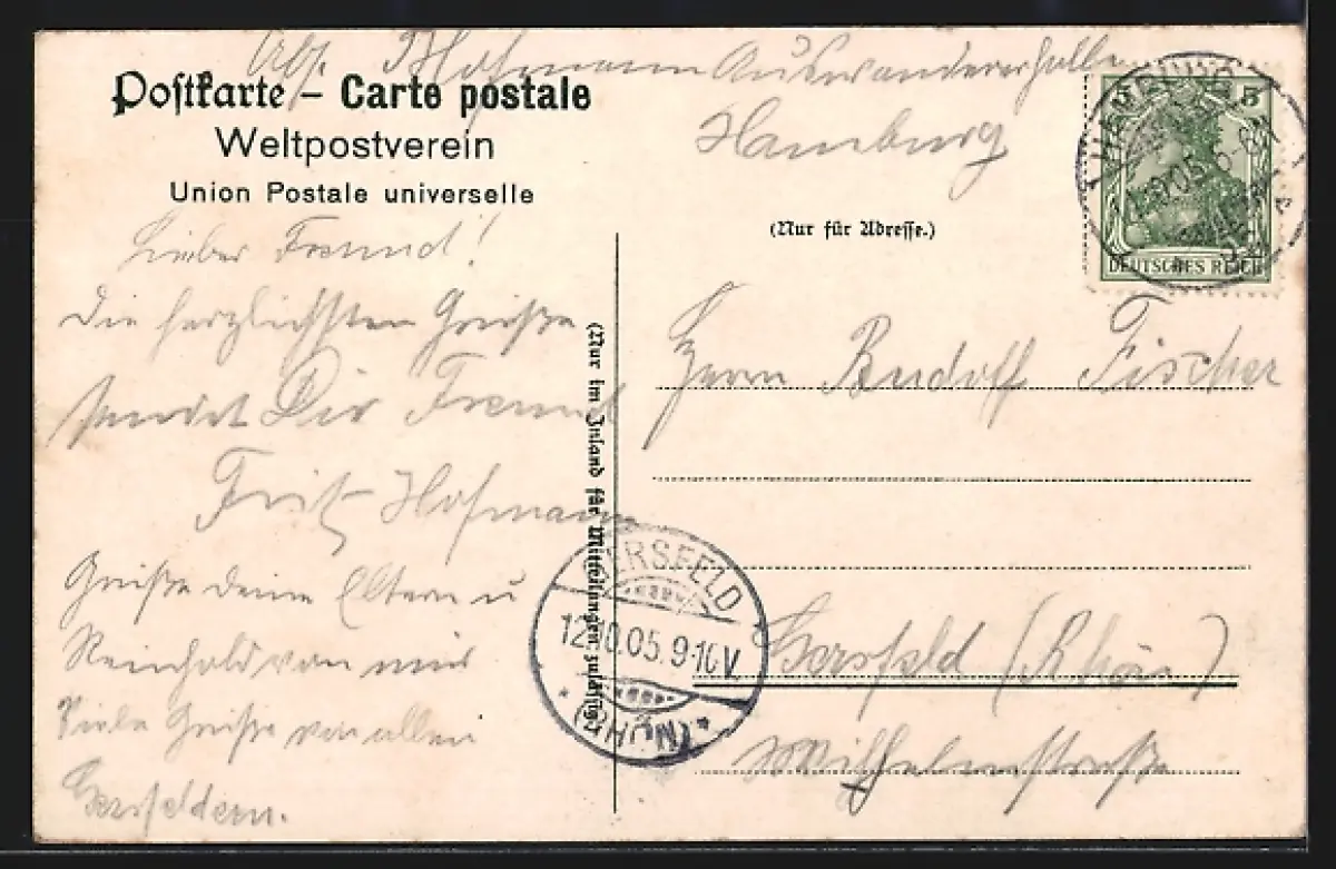 alte Ansichtskarte, gelaufen 1905, guter Zustand