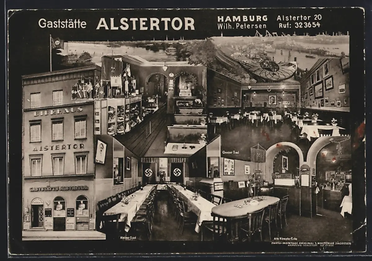 AK Hamburg, Gasthaus Alstertor, Inh. Wilh. Petersen, Alstertor 20, , Porträt v. an einer Wand