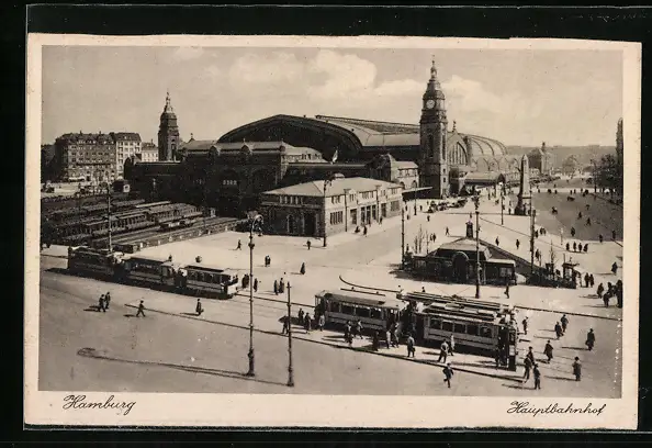 AK Hamburg, Hauptbahnhof, Strassenbahnen