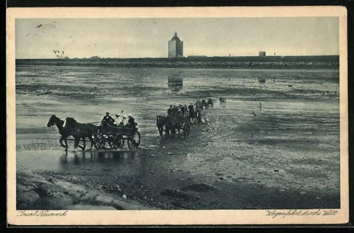 AK Hamburg-Insel Neuwerk, Wagenfahrt durchs Watt