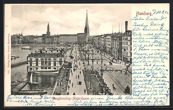 AK Hamburg, Jungfernstieg mit Alsterdamm aus der Vogelschau
