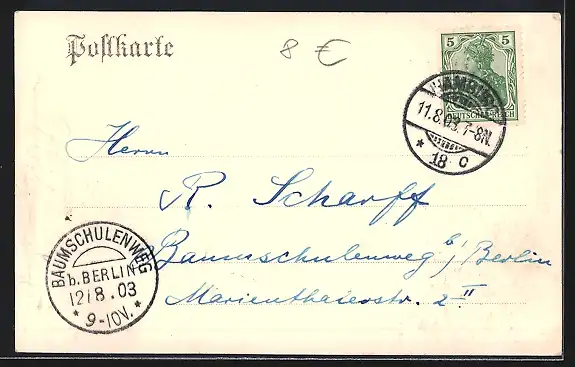 alte Ansichtskarte, gelaufen 1903, Stempelspur, guter Zustand