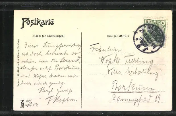 alte Ansichtskarte, gelaufen 1906, Stempelspur, guter Zustand
