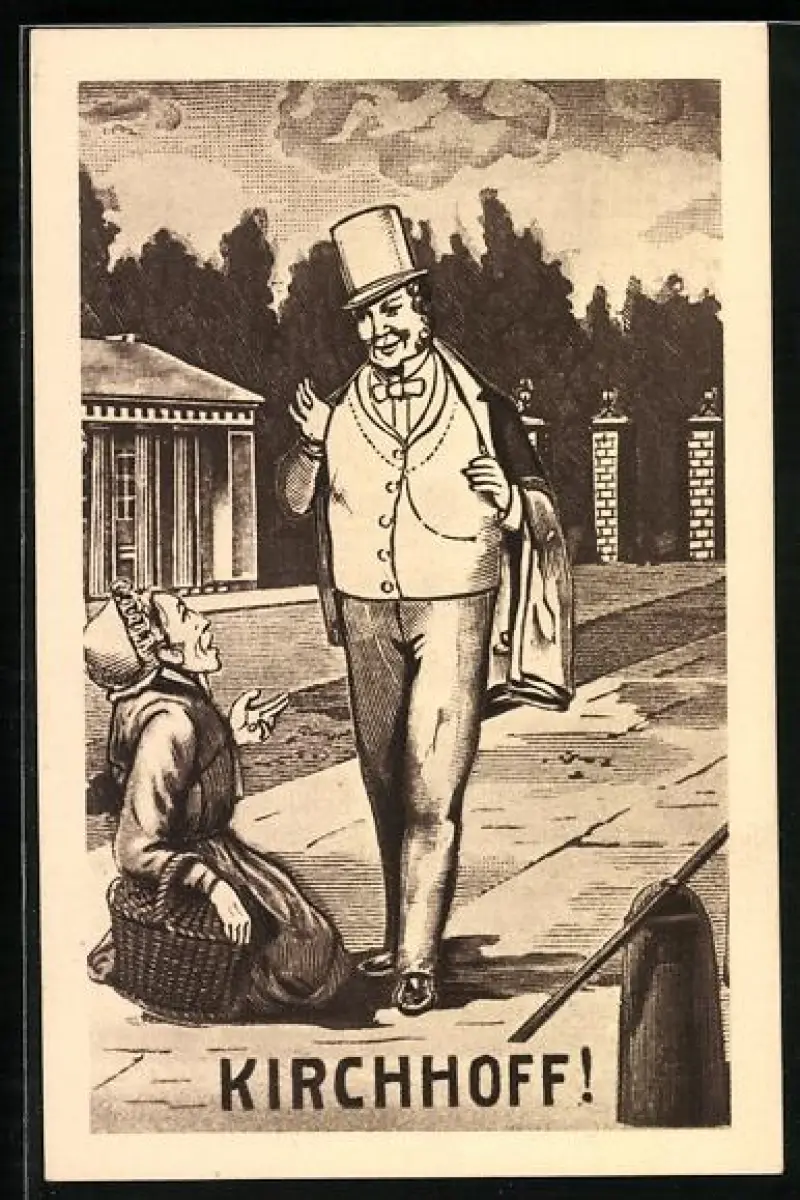 AK Hamburg, Kirchhoff, eine Frau kniet vor dem wohlhabenden Mann mit Zylinder