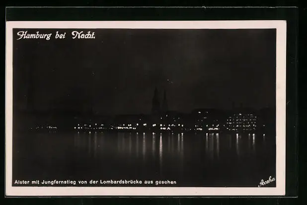 AK Hamburg-Neustadt, Alster mit Jungfernstieg bei Nacht