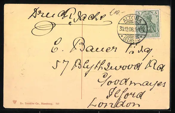 alte Ansichtskarte, gelaufen 1908, Eckknick li. oben, guter Zustand