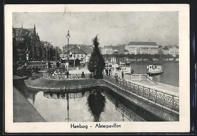 AK Hamburg-Neustadt, Am Alsterpavillon, Boote am Anleger