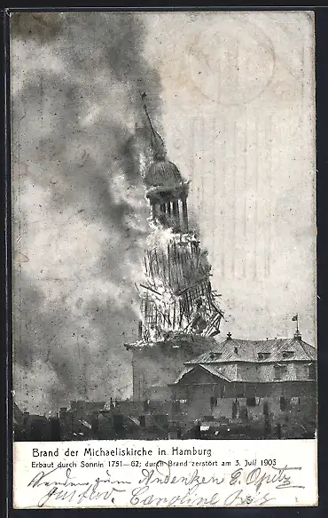 AK Hamburg-Neustadt, Brand der Michaeliskirche, Erbaut 1751-62, Durch Brand zerstört 1906