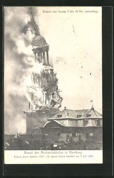AK Hamburg-Neustadt, Brand der Michaeliskirche, Erbaut 1751-62, Durch Brand zerstört 1906, Einsturz des Turmes