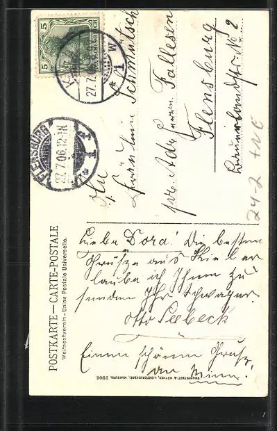 alte Ansichtskarte, gelaufen 1906, Stempelspur, guter Zustand