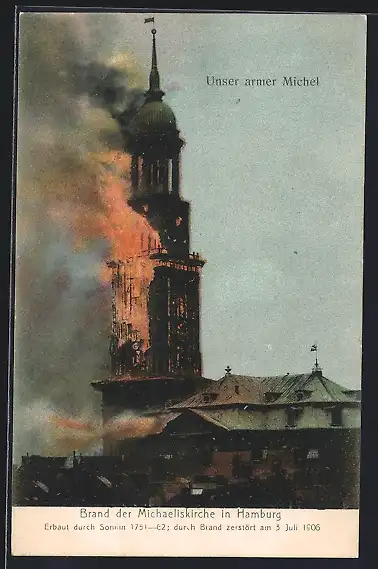 AK Hamburg-Neustadt, Brand der St. Michaeliskirche am 3.07.1906