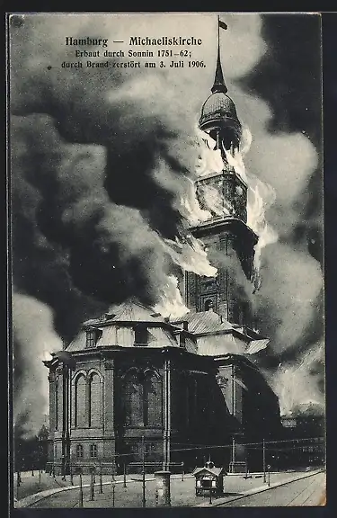 AK Hamburg-Neustadt, Brand der grossen Michaeliskirche am 3.7.1906