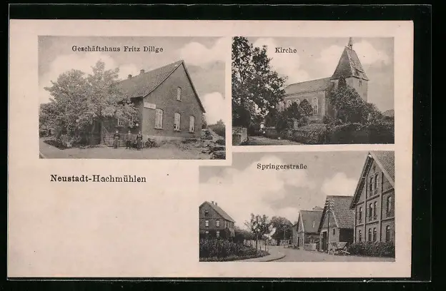 AK Hamburg-Neustadt, Geschäftshaus Fritz Dillge, Partie in der Springerstrasse, Kirche