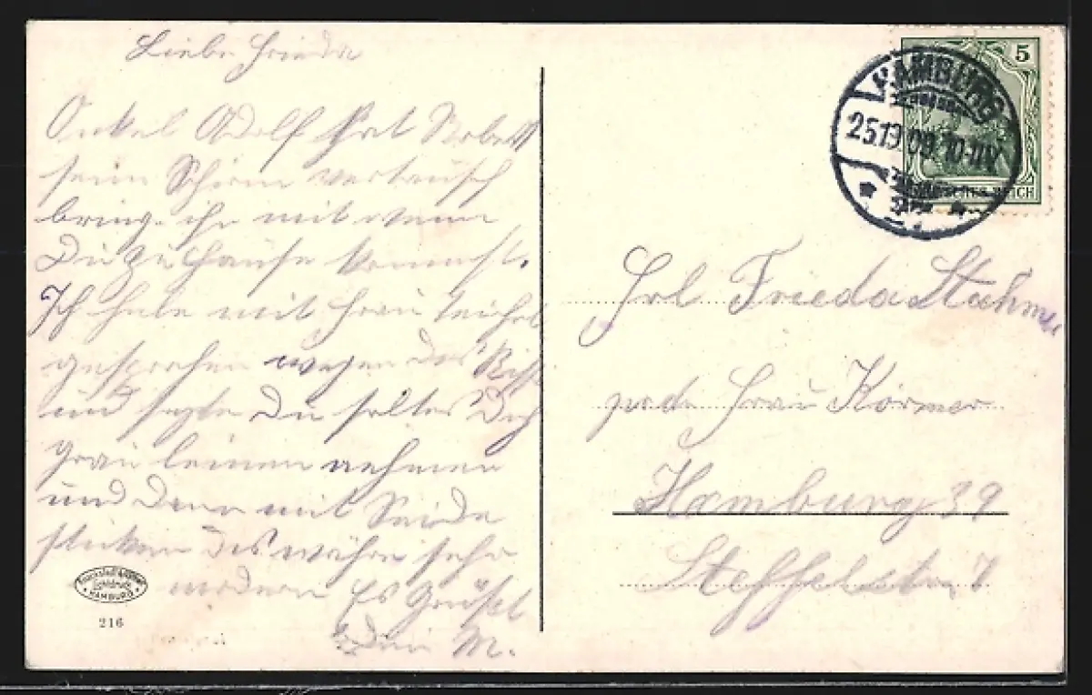 alte Ansichtskarte, gelaufen 1909, guter Zustand