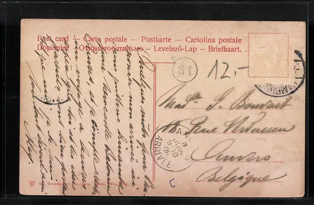 alte Ansichtskarte, gelaufen 1906, Briefmarke entfernt, guter Zustand
