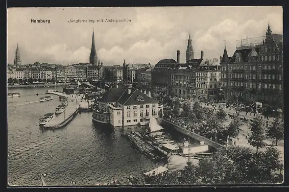 AK Hamburg-Neustadt, Jungfernstieg und Alsterpavillion aus der Vogelschau