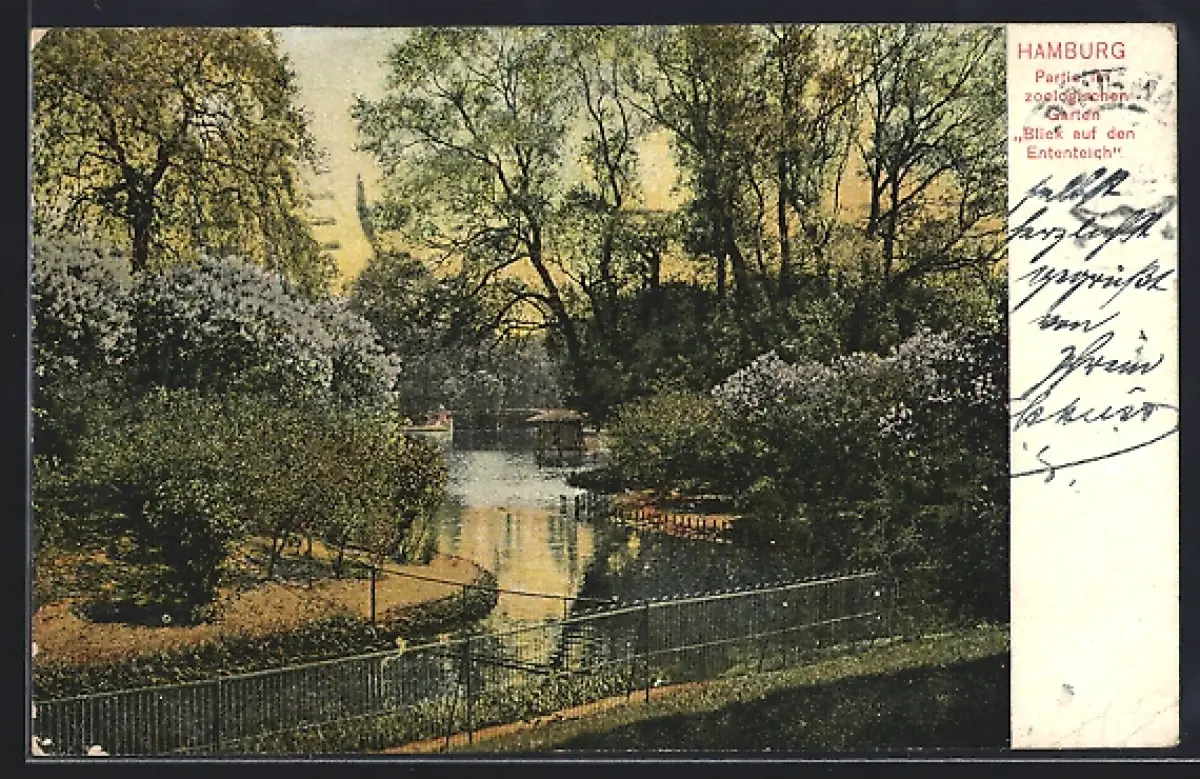 AK Hamburg, Partie im zoologischen Garten, Blick auf den Ententeich