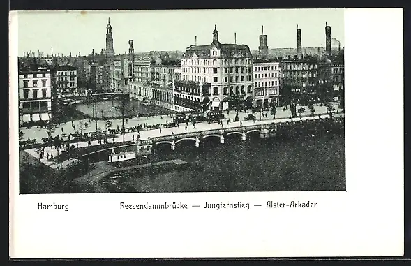 AK Hamburg, Reesendammbrücke, Jungfernsteg, Alster-Arkaden