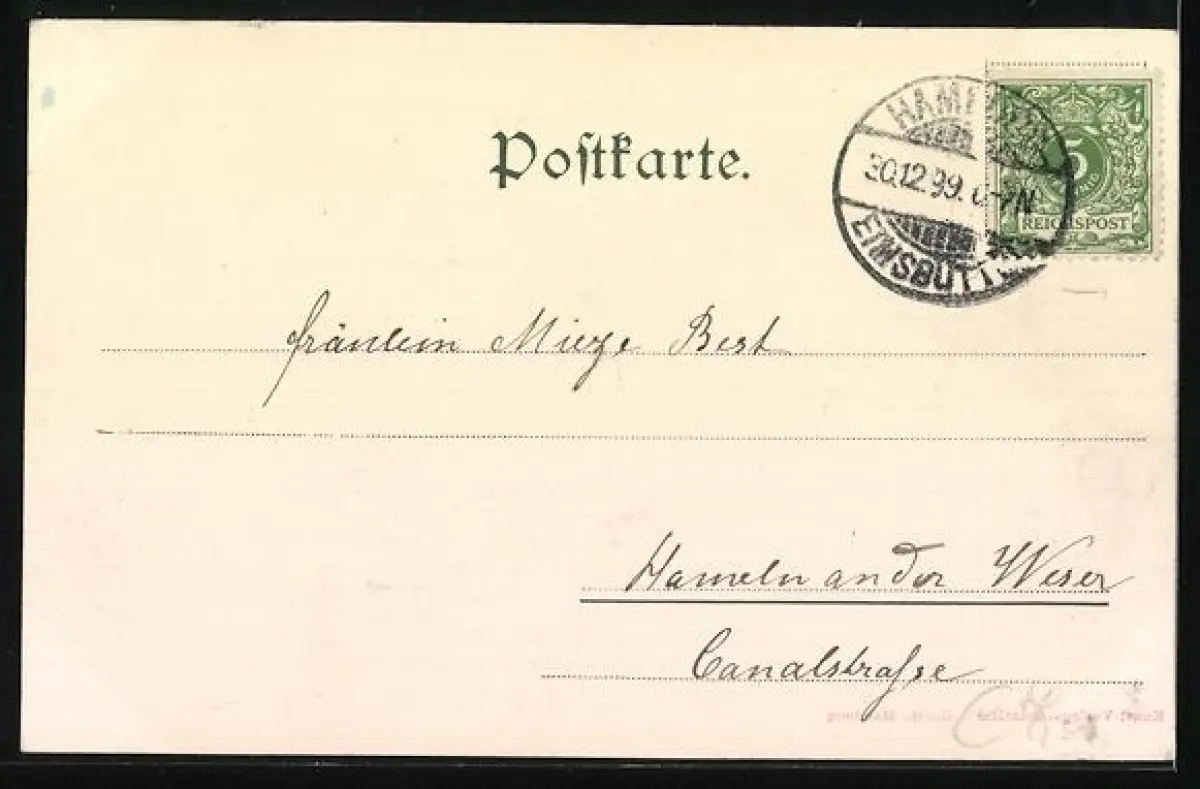 alte Ansichtskarte, gelaufen 1899, guter Zustand