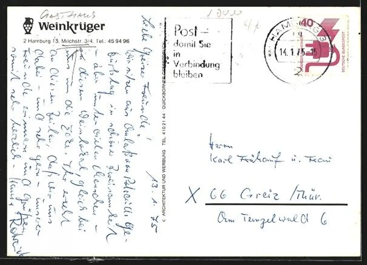 AK Hamburg-Rotherbaum, Gasthaus Weinkrüger, Milchstrasse 3/4