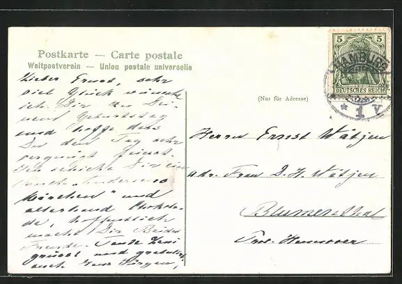 alte Ansichtskarte, gelaufen 1907, Eckknicke links, guter Zustand