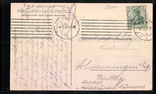 gelaufen 1907, Eckknick rechts unten, guter Zustand