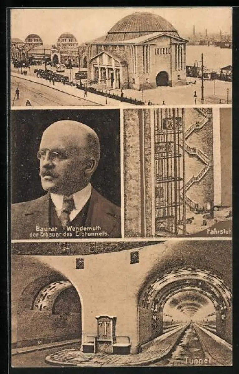 AK Hamburg-St. Pauli, Elbtunnel, Baurath Wendemuth, Fahrstuhl
