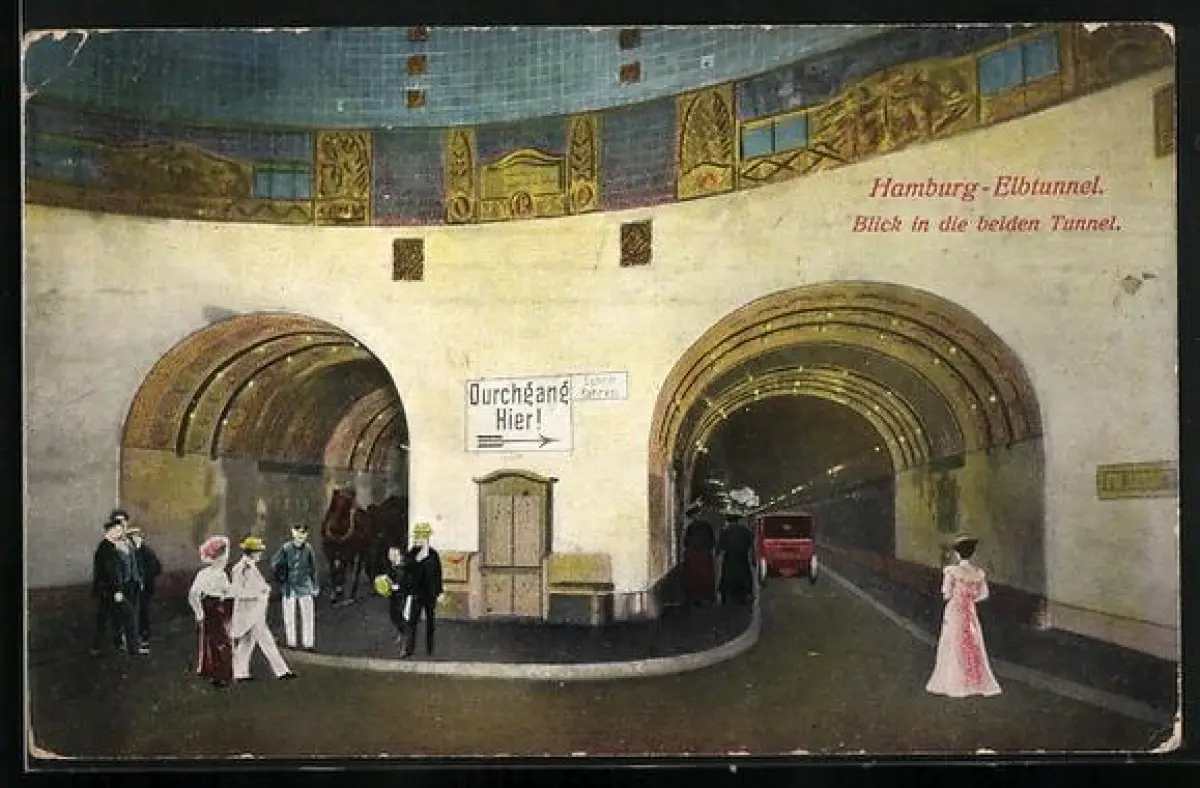 AK Hamburg-St. Pauli, Elbtunnel, Blick in beide Tunnel