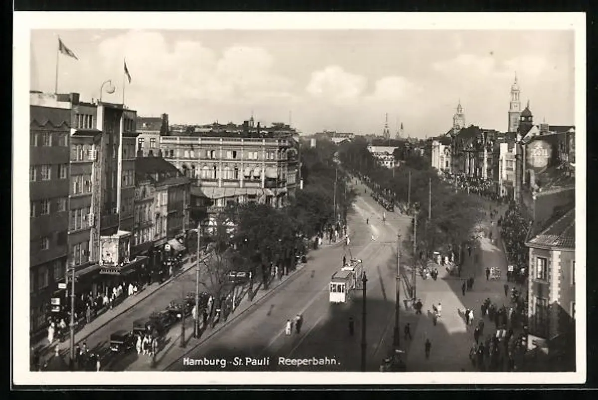 AK Hamburg-St. Pauli, Reeperbahn mit Strassenbahn