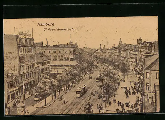 AK Hamburg-St. Pauli, Reeperbahn mit Strassenbahnen