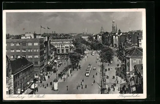 AK Hamburg-St. Pauli, Reeperbahn mit Strassenbahnen